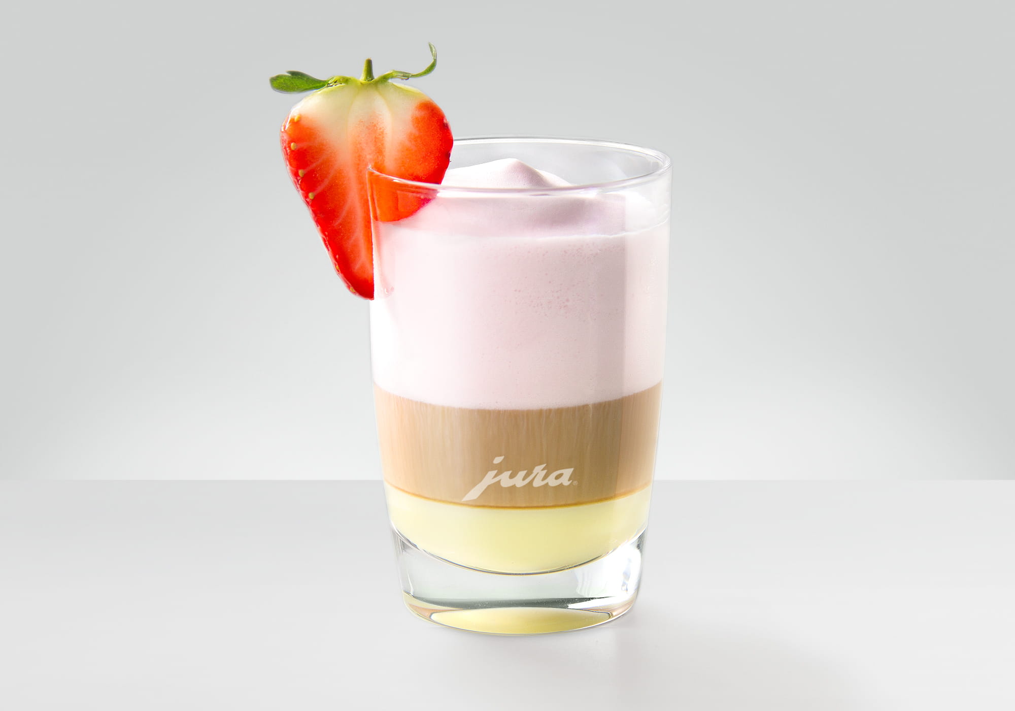 • Wlej mleko oraz syrop truskawkowy do urządzenia do spieniania mleka i przyrządź porcję ciepłej pianki mlecznej.