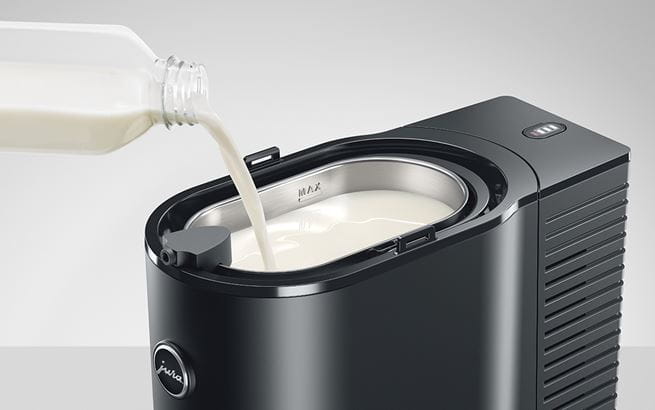 Prosta obsługa chłodziarki do mleka Cool Control zapewnia maksymalny komfort. Mleko można uzupełniać wygodnie i bezpośrednio, nie trudząc się wyjmowaniem pojemnika na mleko. Cyfrowy wskaźnik temperatury oraz idealnie dopasowana pokrywa sprawiają, że obsługa jest wyjątkowo łatwa. Zintegrowane chłodzenie za pomocą ogniw Peltiera gwarantuje, że mleko jest stale utrzymywane w temperaturze 4°C, oraz stwarza optymalne warunki do przyrządzania doskonałych specjałów kawowych z mlekiem. Ponadto pojemnik na mleko wykonany ze stali szlachetnej i wyposażony w uchwyt, rurka metalowa oraz adapter nadają się do mycia w zmywarce, co niezwykle ułatwia codzienne czyszczenie.