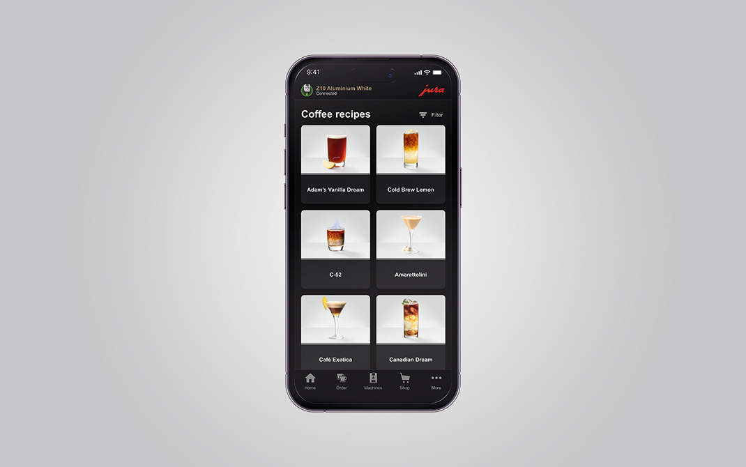 Dzięki J.O.E.® JURA oferuje inteligentne i przyjazne dla użytkownika rozwiązanie do obsługi w pełni automatycznego ekspresu do kawy JURA. Aplikacja przenosi wszystkie funkcje w pełni automatycznych ekspresów do kawy JURA na smartfon i tablet. Nawet ulubione specjały kawowe na Apple Watch.
